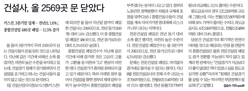 글제목 | 25년 3분기 건설사 2500여개 폐업 | ||